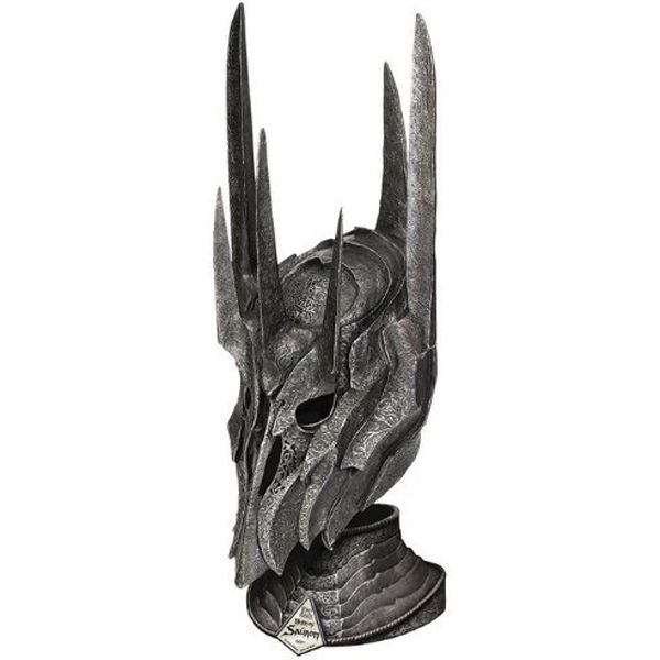 Includes Display Stand. $259.99. Item Number: UC3521. War Helm of the Dark Lord Sauron is an officially licensed movie replica from the popular Lord of the Rings movies. This half-scale reproduction of the actual prop helmet is 15 ½ inches high. It is an intricately detailed polyresin version of the of the blackened steel war helm of Sauron.